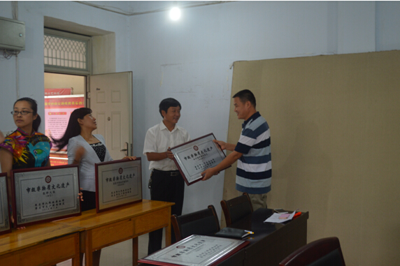 近期,枣庄市人民政府公布了枣庄市第五批市级非物质文化遗产名录项目19项、扩展项目12项,共计31项。枣庄市群众艺术馆于2014年8月7日在艺术馆一楼会议室举行枣庄市第五批市级非物质文化遗产名录项目颁牌仪式,市群众艺术馆馆长徐隆出席仪式,各区(市)文化馆代表参加颁牌仪式,由徐隆馆长向各区(市)申报单位颁发标牌。